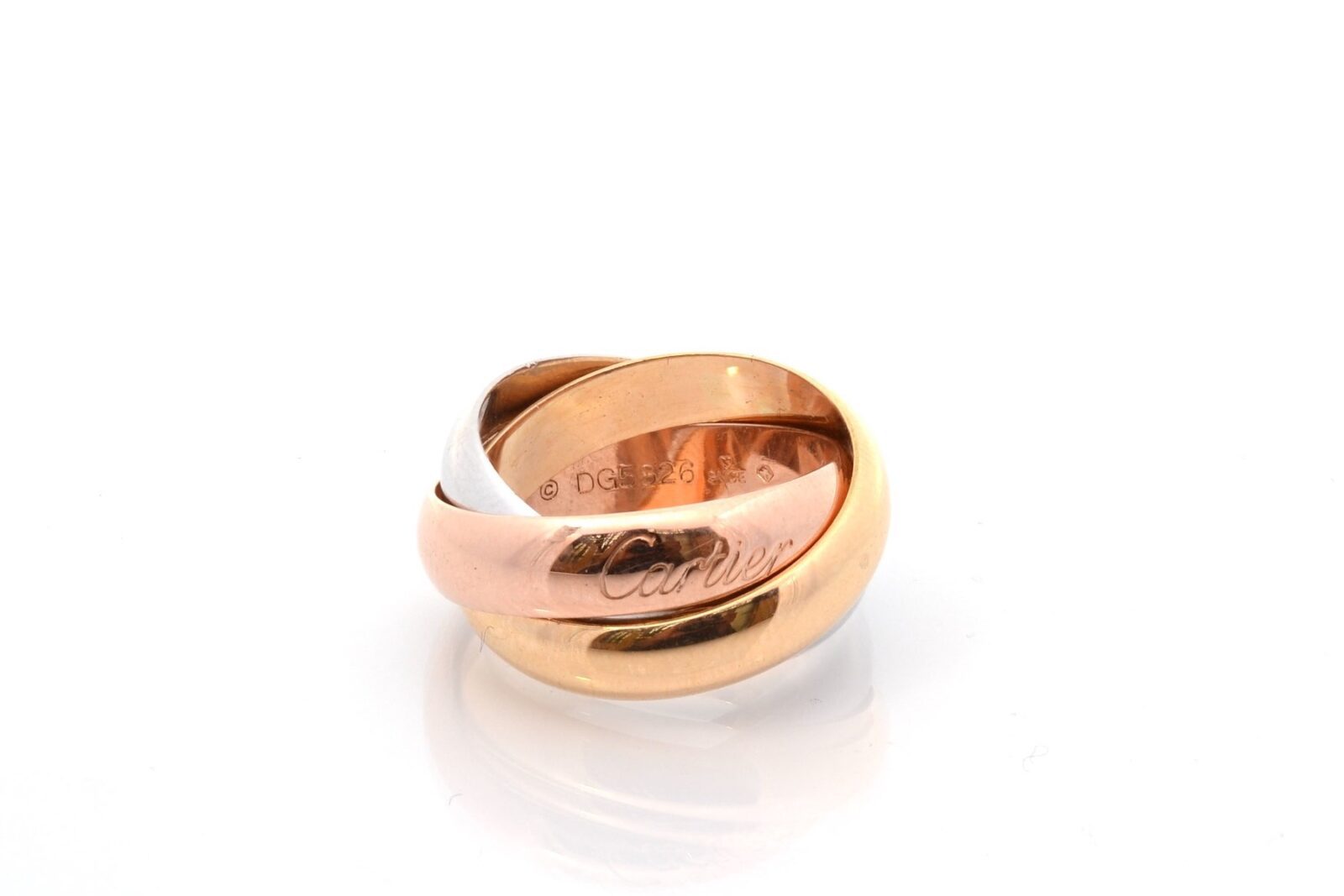 3 300 €Pierres : 3 diamants: 0,35ct Matière : Or 18k Dimensions : 6,5cm de diamètre Poids : 22g Époque : Récente Livraison : Gratuite dans l’union EuropéenneBague Cartier Trinity trois ors